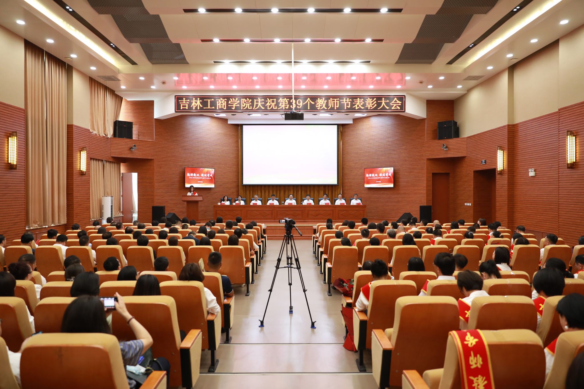 春华秋实,桃李沁香;秋风送爽,金菊绽放。9月8日,在第39个教师节即将来临之际,为进一步弘扬尊师重教的传统美德,激励广大教师爱岗敬业,展示我校广大教师“躬耕教坛 强国有我”的精神风貌,学校在第二教学楼A区429报告厅举行了2023年教师节表彰大会。党委书记张炳辉出席会议并讲话。党委副书记、校长张越杰主持大会。党委副书记杜希刚、迟柏龙,纪委书记崔宪刚,副校长徐文、张熙奀、管清平、董本云出席大会。
