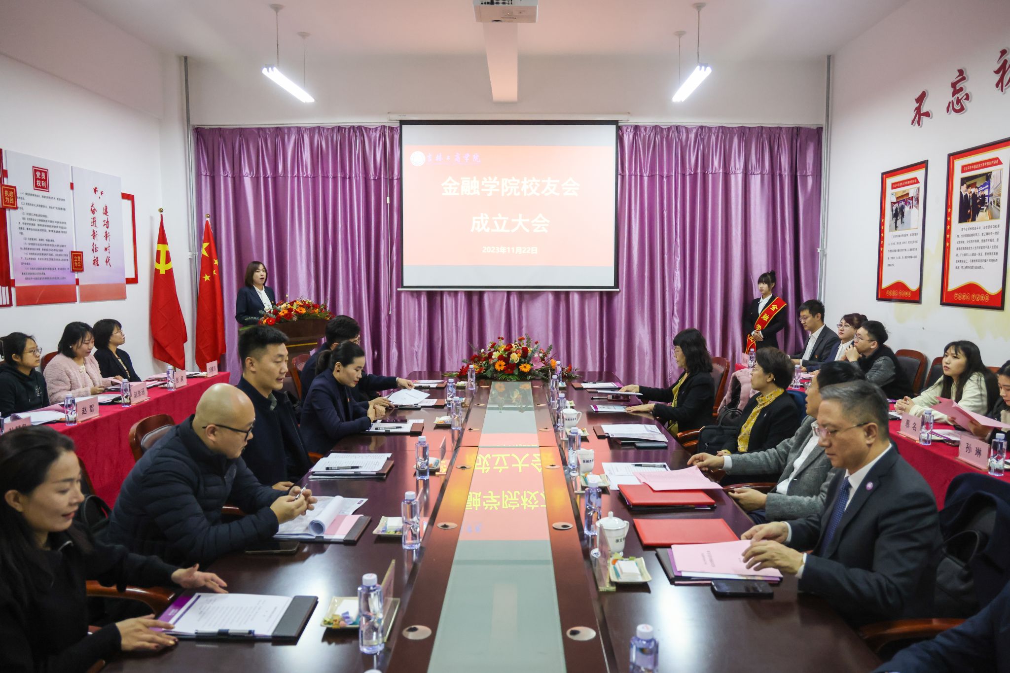 11月22日,吉林工商学院金融学院校友会成立大会在第二教学楼A区433会议室召开。校长张越杰,副校长徐文、张熙奀出席会议。校友工作办公室负责人、金融学院班子成员、教师代表以及来自全国各地的优秀校友代表参加大会。