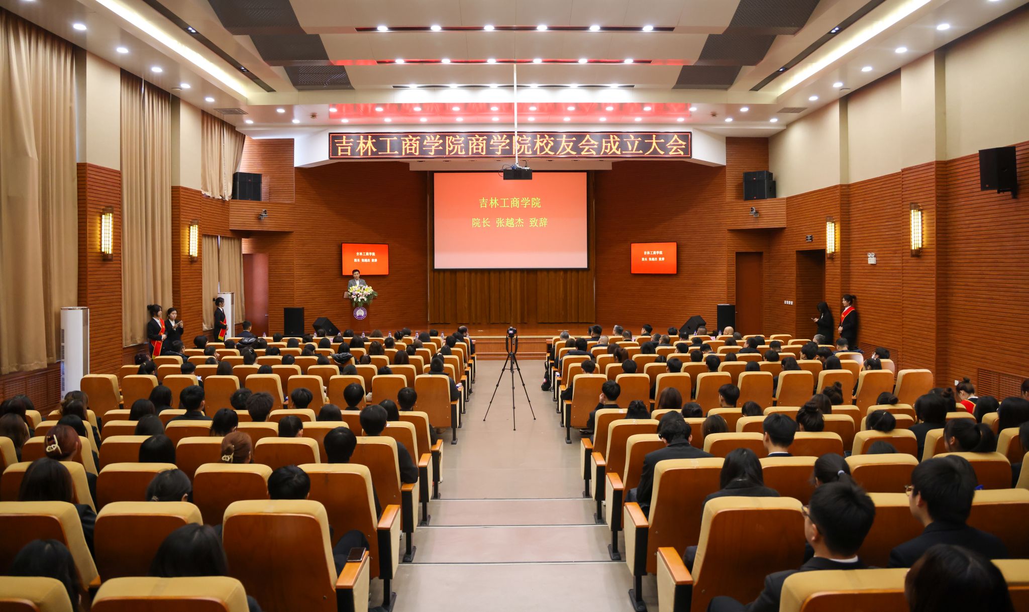 11月25日上午,吉林工商学院商学院校友会成立大会在第二教学楼A区429报告厅举行。校长张越杰,党委副书记杜希刚,副校长徐文出席大会。来自全国各地的优秀校友代表、商学院全体教师和在校学生代表参加大会。大会由商学院党委书记林海主持。