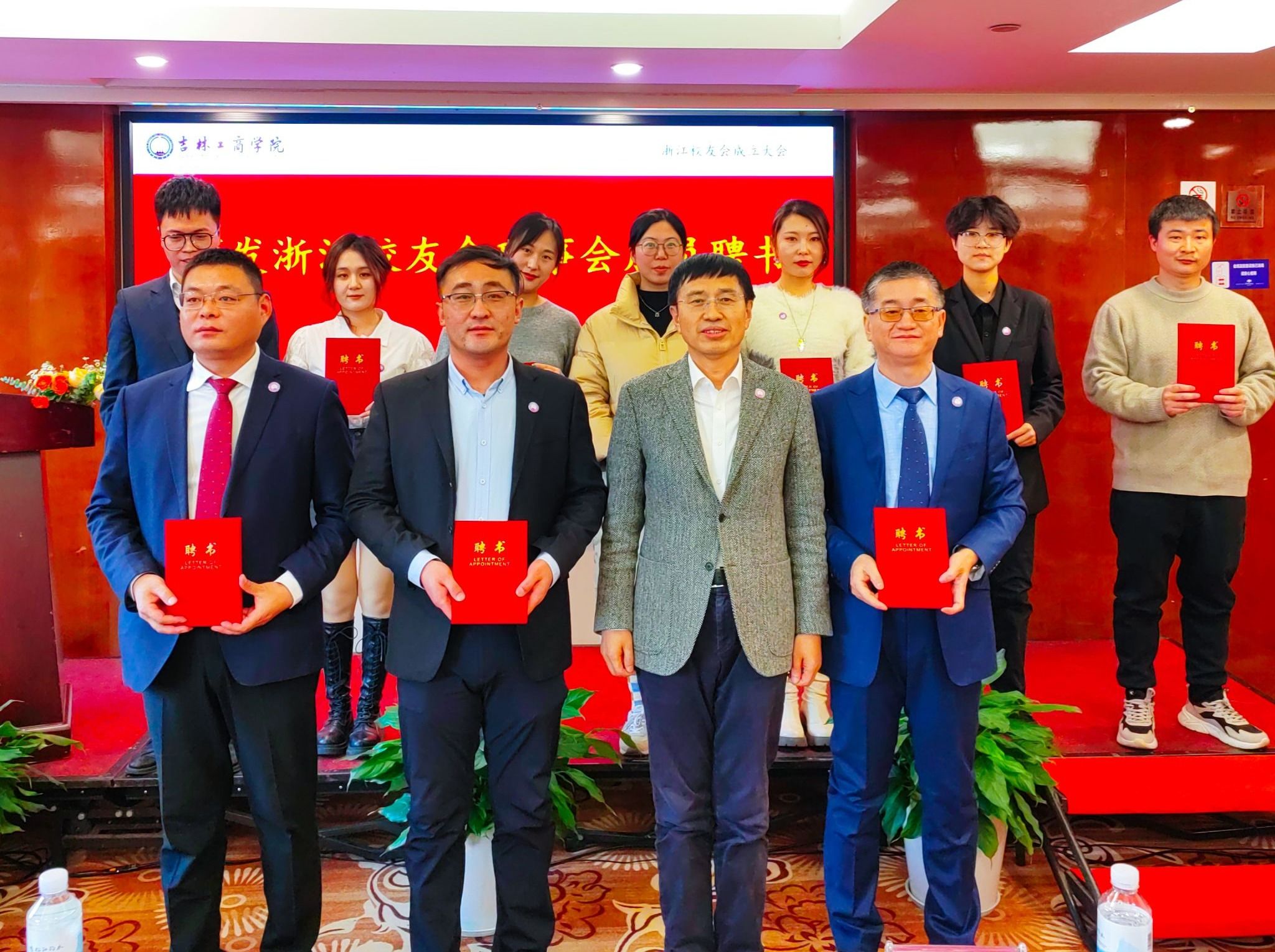 张越杰向我校浙江校友会理事会成员颁发聘书。