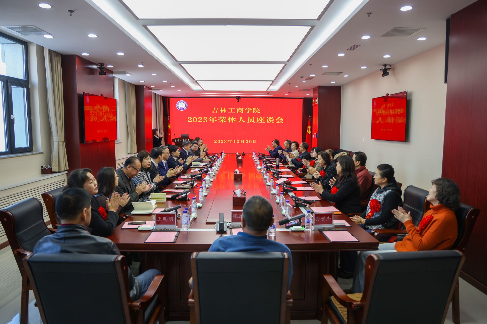 会上,大家一同观看了教职工荣休座谈会纪念短片。短片回顾了荣休教职工入职时的青涩以及在吉林工商学院奋斗的美好时光,展现了退休后优雅闲适的生活状态,短片是情怀的记录,更是敬意的表达。参会的荣休教职工纷纷拿出手机拍摄,留下这弥足珍贵的“青春记忆”。