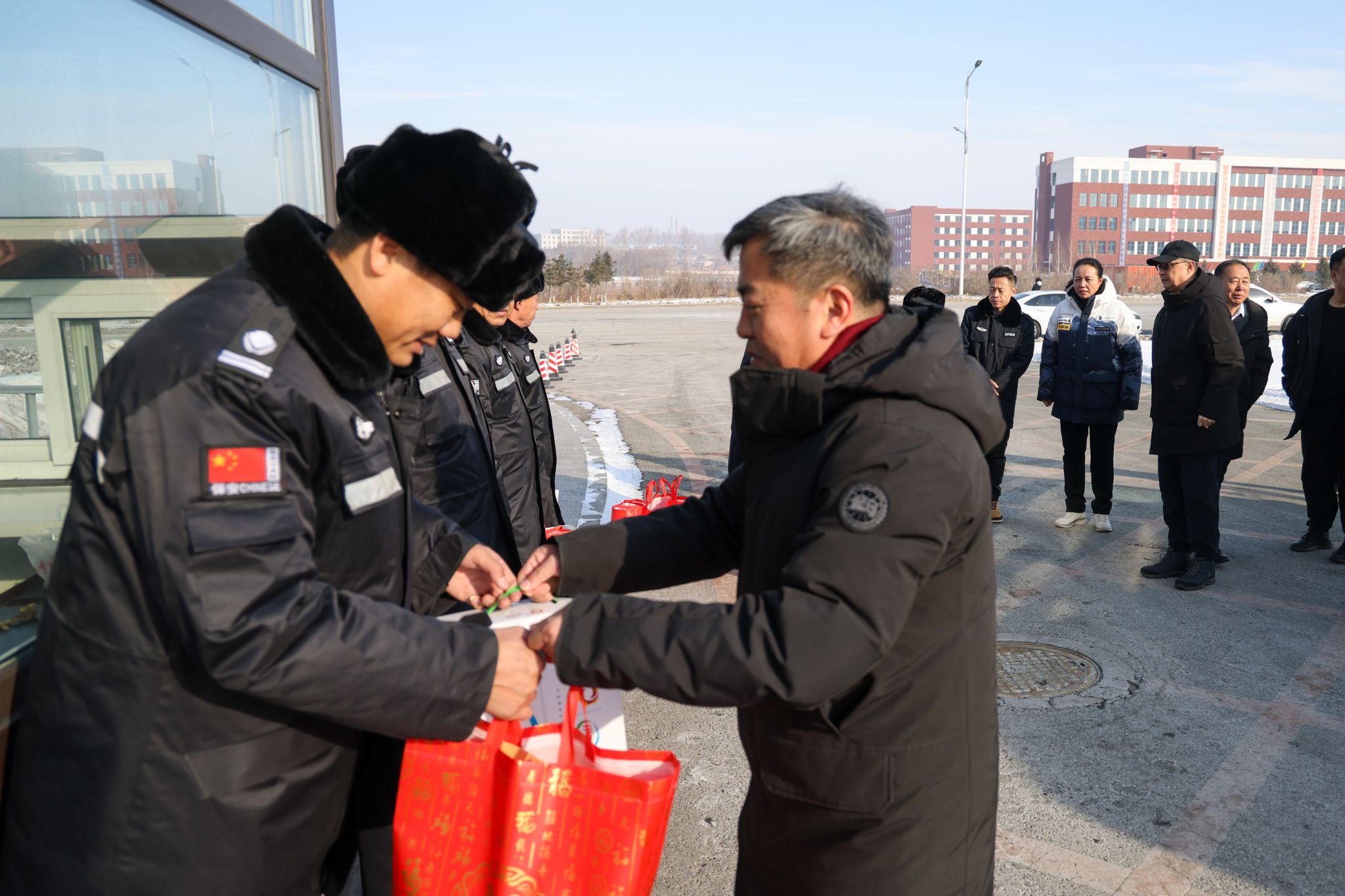 丹凤呈祥龙献瑞,红桃贺岁杏迎春。2月9日,正值农历除夕,在阖家团圆的喜庆时刻,党委书记张炳辉、副校长管清平,深入校园各个岗位,看望慰问春节和寒假期间坚守岗位的教职工,代表学校送上新春祝福和节日慰问品。