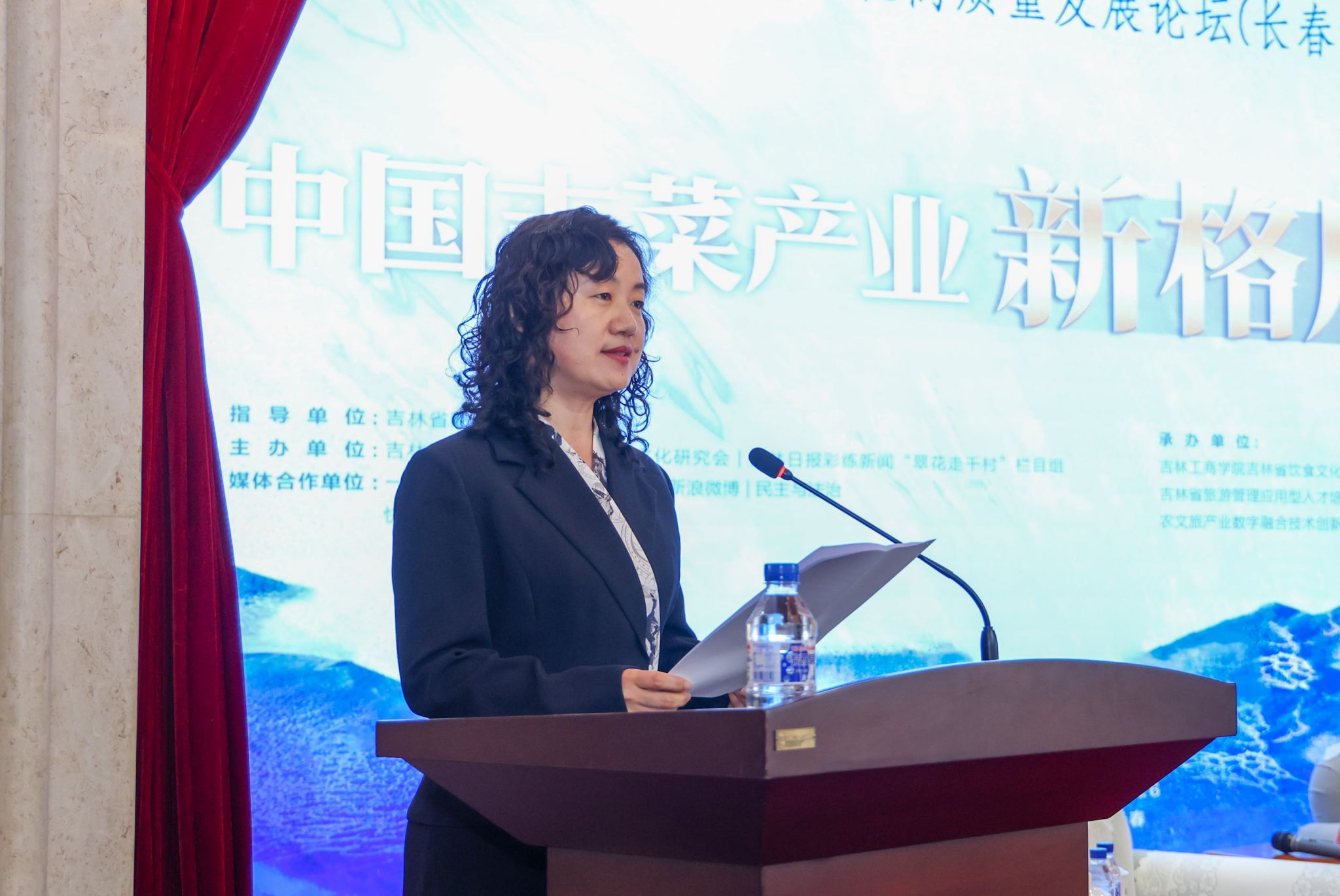 吉林省商务厅二级巡视员杨宏伟在论坛上致辞。她表示,吉林省商务厅将以此为契机,全力推动吉菜产业发展;全年持续开展吉菜推广活动,完善吉菜标准,创新研发吉菜;围绕擦亮吉菜品牌,开发具有吉林特色的吉菜文化产品,讲好吉菜品牌故事。