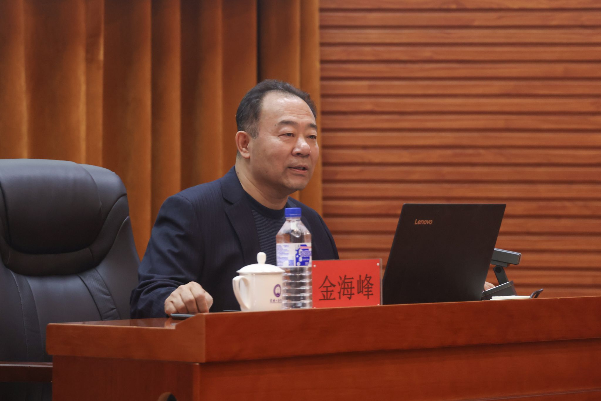 习近平文化思想专题报告会上,金海峰教授以《习近平文化思想之中国式现代化寻根铸魂》为题,全面介绍了中华优秀传统文化的发展进程,为我校师生解读了文化、中国传统文化、现代中国文化的内涵与外延,指出现代中国文化要从中华优秀传统文化、共产党人理想信念和发展创新时代精神等方面来传承、发扬和创新。