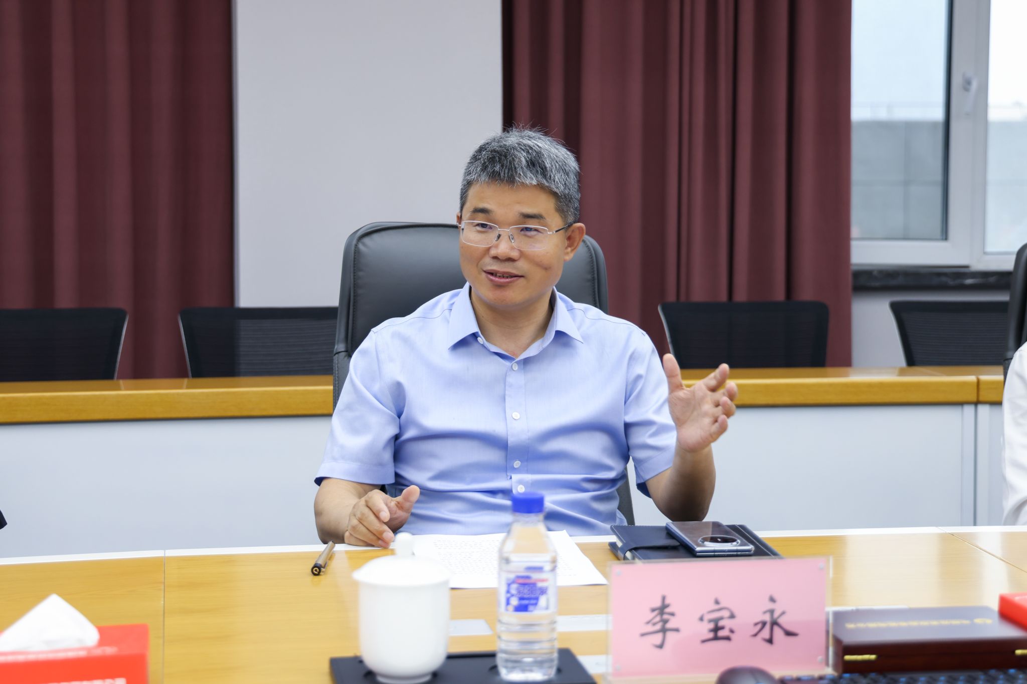 杜希刚介绍了学校的就业工作开展情况和2024届毕业生专业情况,并诚挚邀请集团领导到校招聘英才、交流合作。