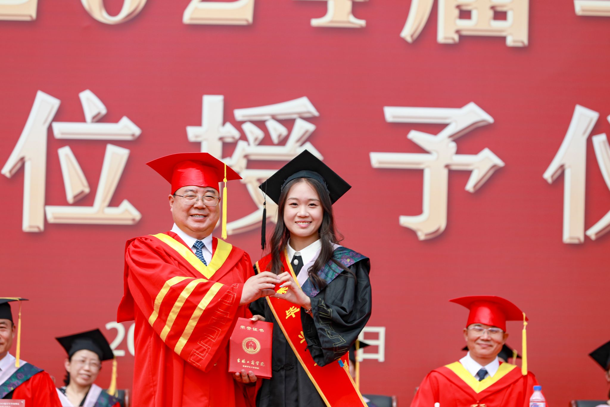 全体校领导为获得学位的毕业生代表颁发学位证书、扶苏拨穗。