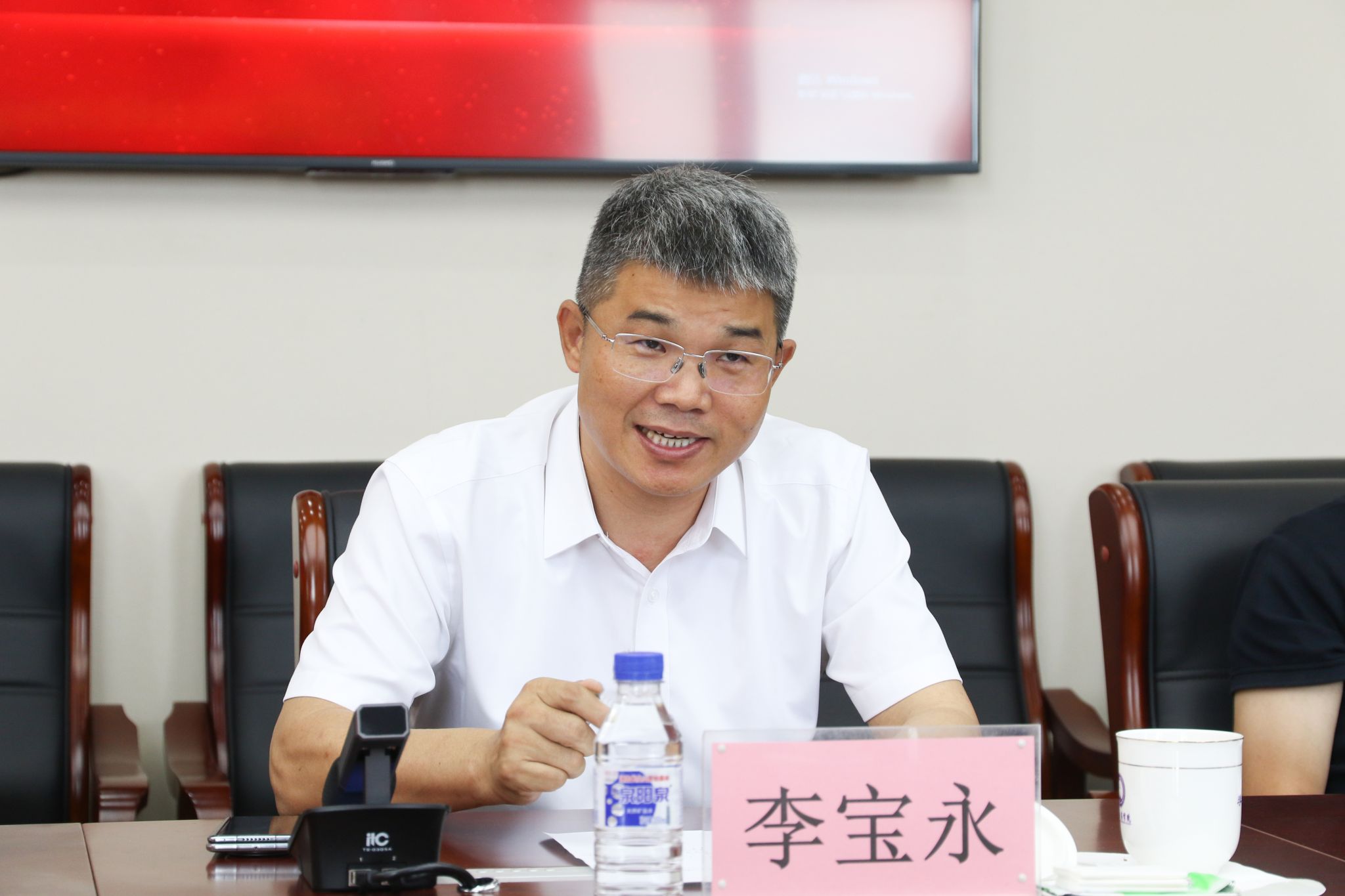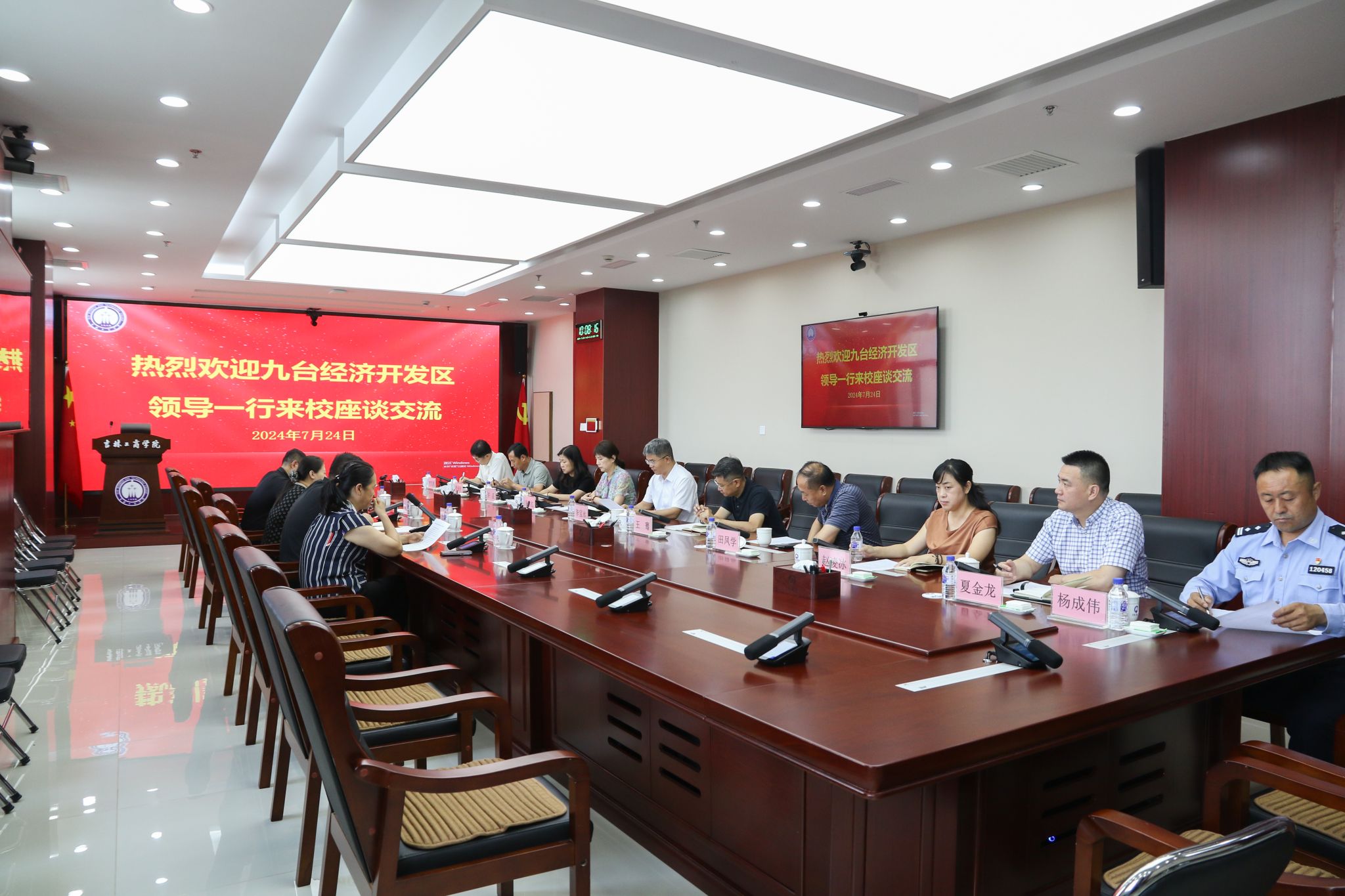7月24日,九台区副区长杜鹏一行来校就校地合作事宜座谈交流。我校党委副书记、校长李宝永热情接待杜鹏一行。