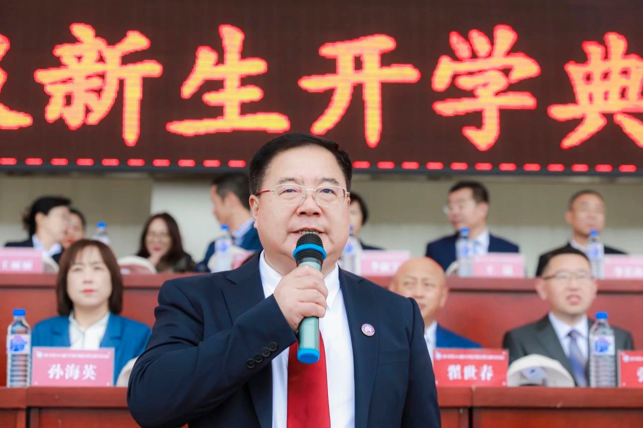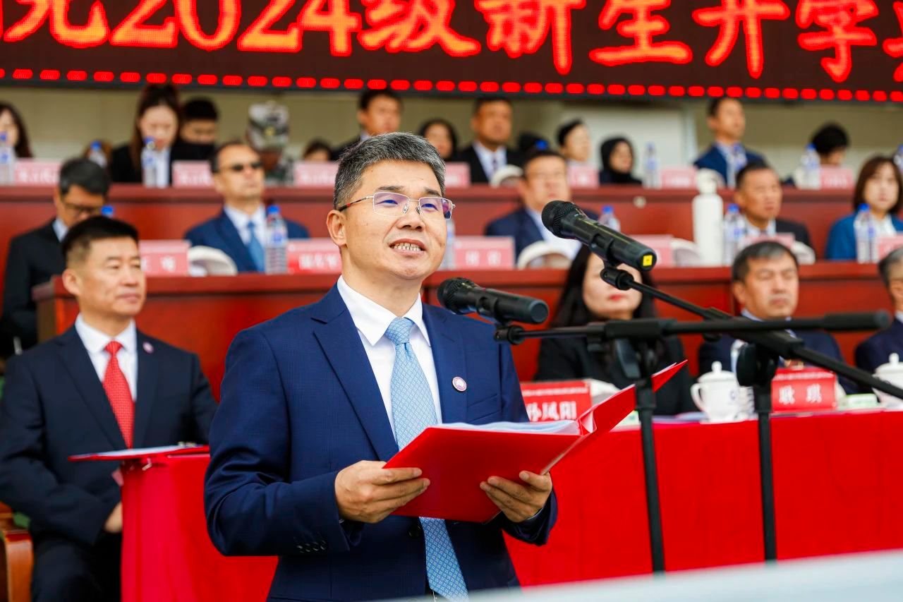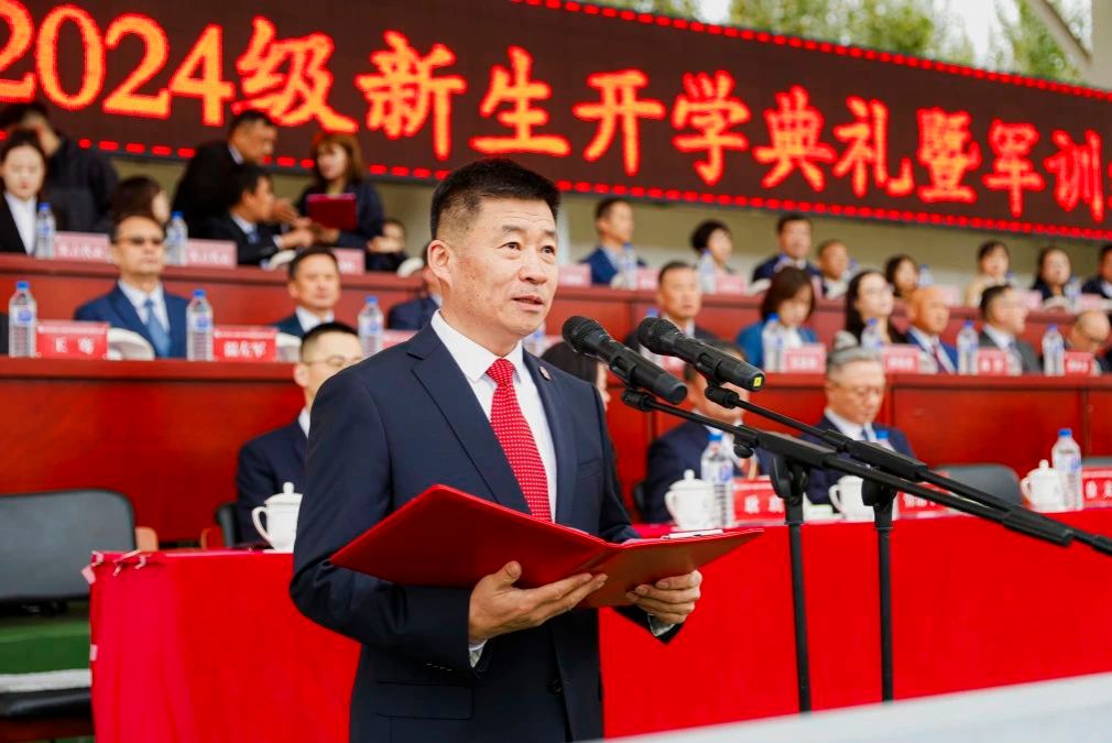 李宝永以《博学善思、厚德自强 奋力书写为中国式现代化挺膺担当的青春篇章》为题作讲话。他代表学校党委,向4406名新同学表示欢迎和祝贺,向辛勤培育、悉心教导学生成长的父母、老师致以崇高的敬意。