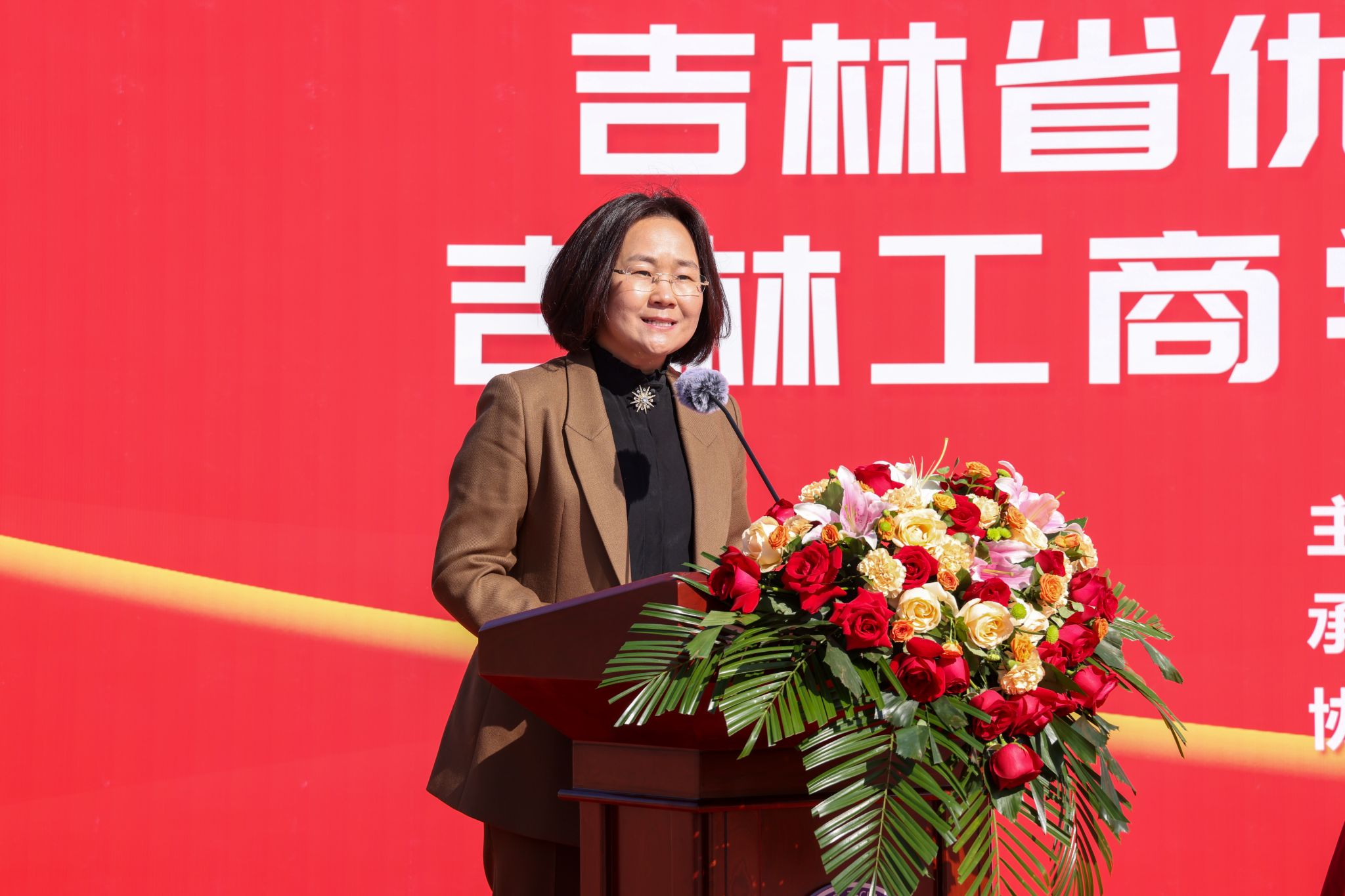 中国储备粮管理集团有限公司吉林分公司总经理助理张红霞作为企业代表致辞。她表示吉林工商学院与中储粮吉林分公司是重要合作伙伴。学校作为省内粮食专业一流院校,培养了一大批行业产业发展需要的高素质涉粮专业人才,是中储粮吉林分公司重要生源地,已有多名校友成长为企业高管和中层干部。中储粮吉林分公司将继续积极融入协同育人、科技创新和产业发展,助力吉林工商学院高质量发展。