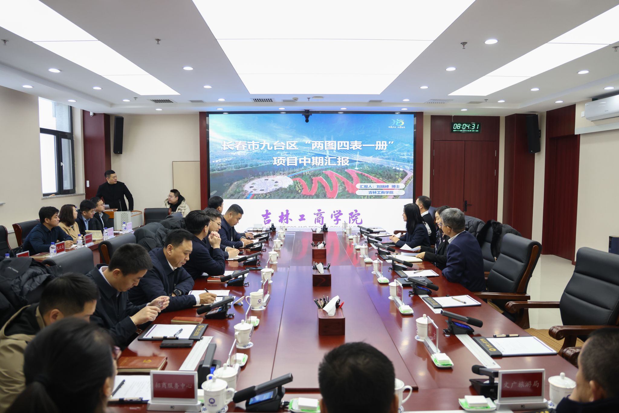 11月28日,“两图四表一册”项目对接座谈会在我校综合办公楼701会议室召开,九台区委书记陈亮,区委副书记于洪波,副区长祖东航,副区长、长春九台经济开发区党工委书记、管委会主任孙志超,副区长杜鹏;我校党委副书记、校长李宝永,副校长董本云出席会议,会议由董本云主持。