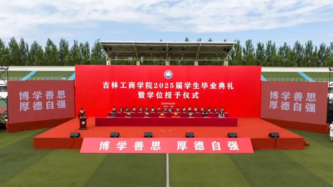 6月20日,吉林工商学院2025届学生毕业典礼暨学位授予仪式在第一田径场举行。校领导张吉锋、李宝永、杜希刚、徐文、张熙奀、管清平、董本云,校友代表、2019届商学院人力资源管理专业毕业生、哈尔滨商业大学人力资源管理专业教师董佳琦出席毕业典礼。党委常委,学位评定委员会委员,有关部门、单位主要负责人,2025届毕业生以及在校生代表、教师代表近2000人参加典礼。
