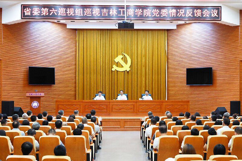 根据省委部署,2025年8月1日,省委第六巡视组向吉林工商学院党委反馈了巡视情况。组长张国华分别向吉林工商学院党委书记张吉锋和学院党委领导班子进行会议反馈,会议传达了省委书记黄强在听取十二届省委第六轮巡视综合情况汇报时的讲话精神。张吉锋主持向领导班子反馈会议并作表态发言。