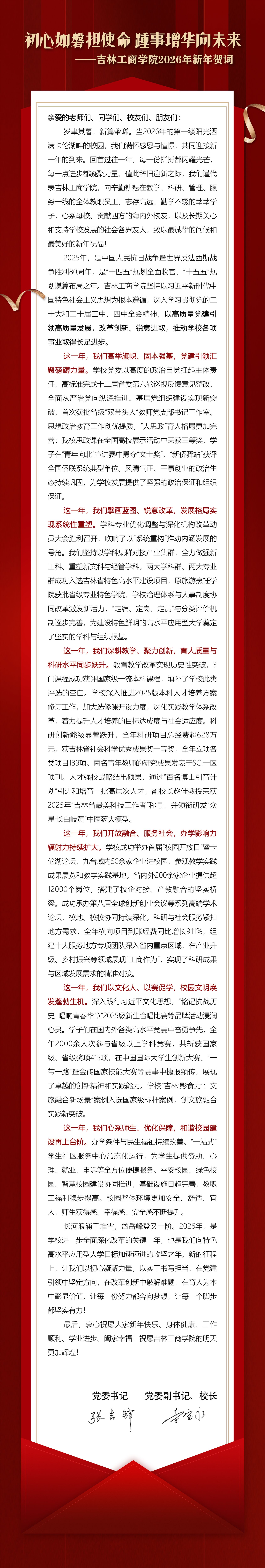 吉林工商学院2026年新年贺词